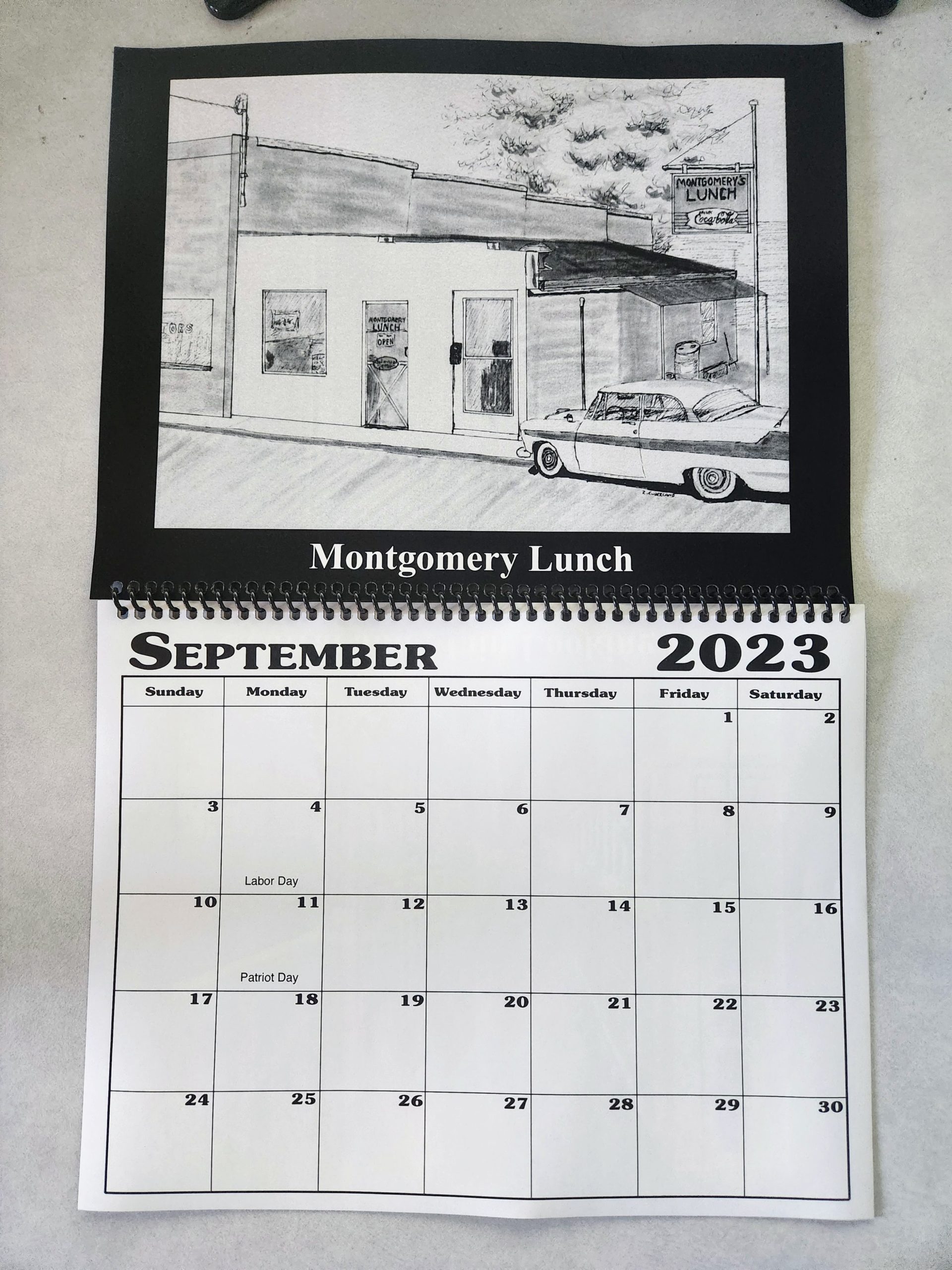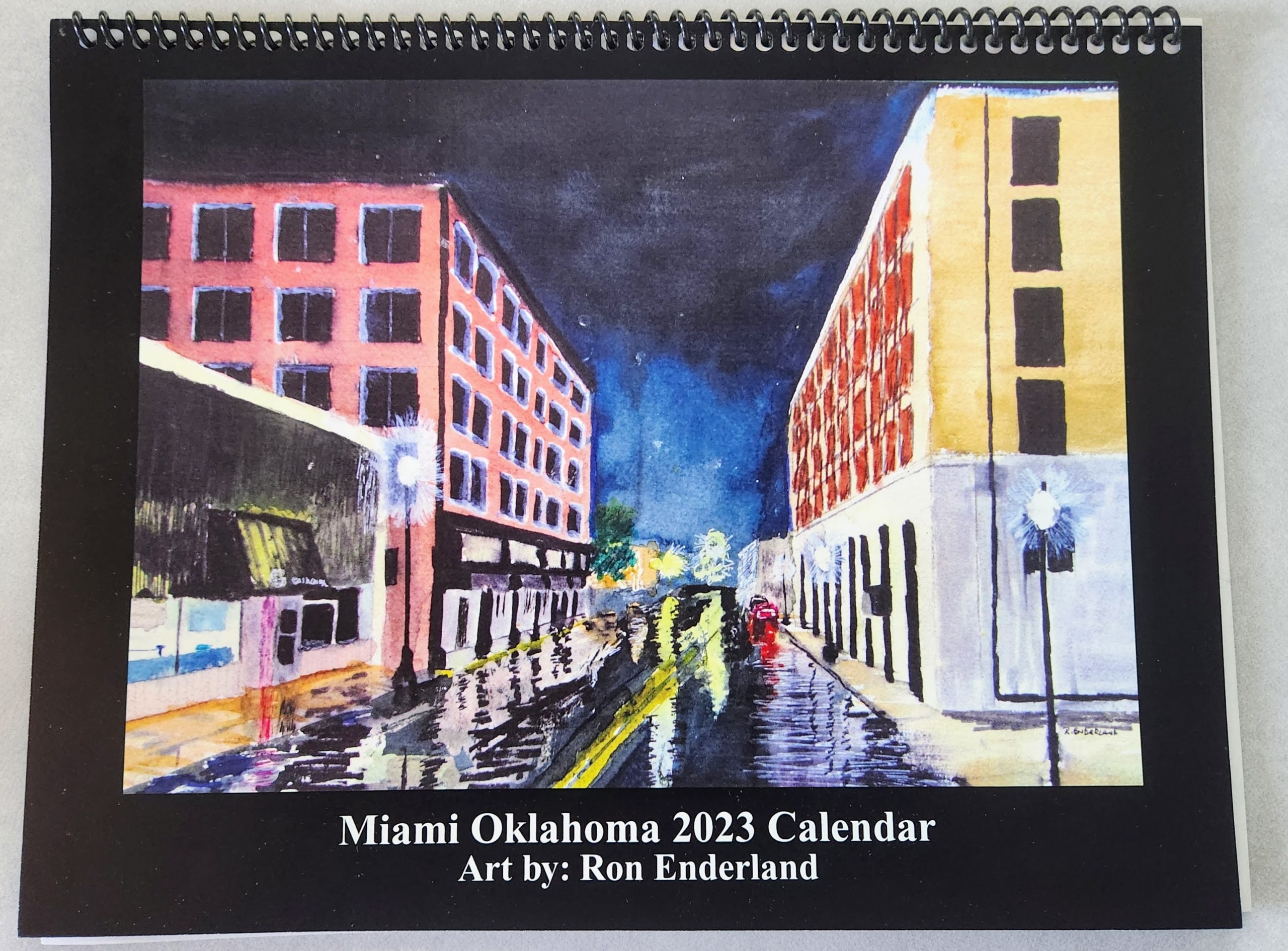 2023 Miami, Oklahoma Calendar Posted on November 3, 2022January 1, 2025 by Ron Enderland $25.00 73 in stock (can be backordered) 2023 Miami, Oklahoma Calendar quantity Add to cart Categories: Other Items, Miami, Oklahoma Description Description Calendar features heavy paper, spiral binding. Printed right in Miami, Oklahoma! Calendars ready to ship! Five color images, seven black and white, all the art of Ron Enderland, Miami native. Related products Miami Signage Collage $25.00 Add to cart Miami, Oklahoma Fire Station, 1966 $25.00 Add to cart Farrier’s IGA, 1963 $25.00 Add to cart The Ku-Ku Drive In, Miami, Oklahoma, 1966 $25.00 Add to cart