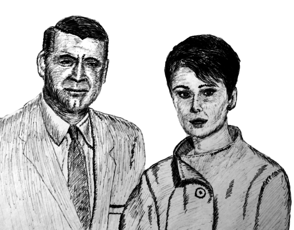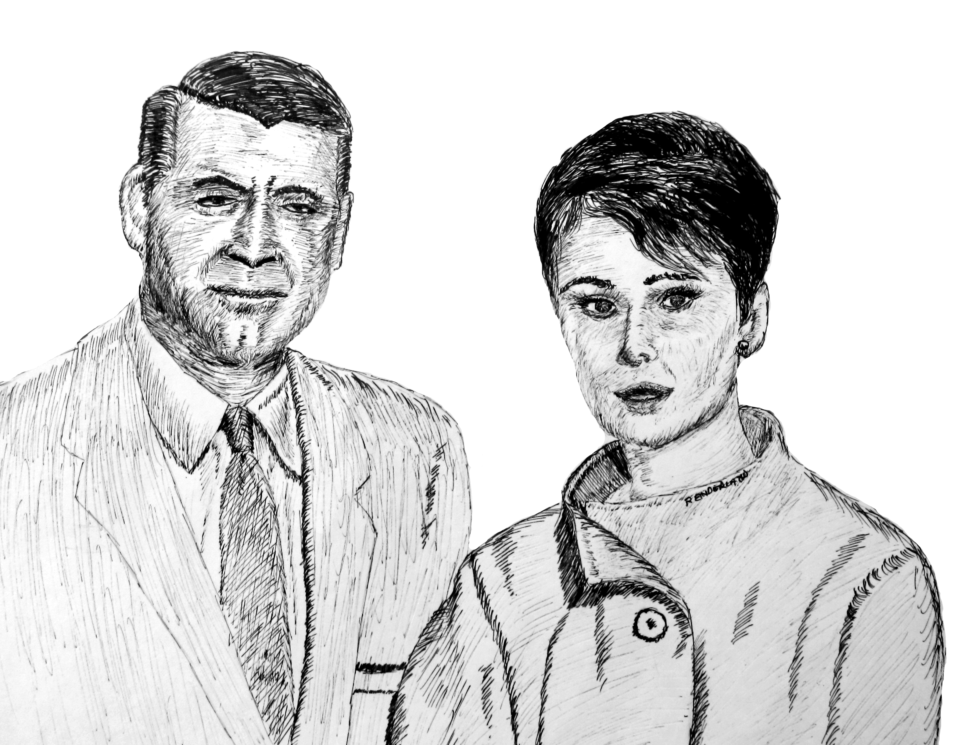 Matted print of Cary Grant and Audrey Hepburn in Charade