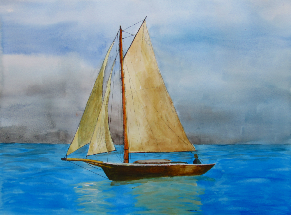Matted, wrapped, signed 8 x 10 print on fine art paper, your choice of white or cream. Cutter, out for a sail before the storm hits.
