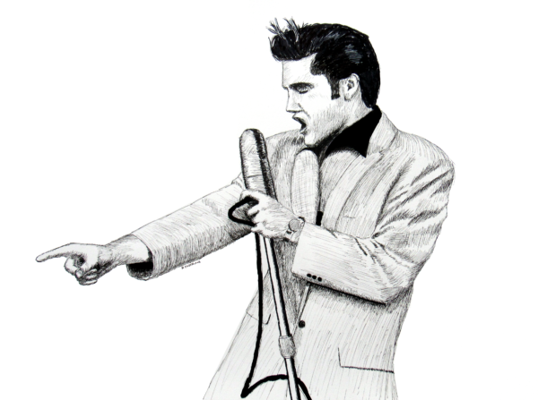 Matted, wrapped, signed 8 x 10 print on fine art paper, your choice of white or cream. Elvis on Stage 1956. He was the King.
