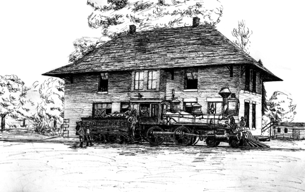 Matted print of Frisco Station, Bentonville, Arkansas, 1920