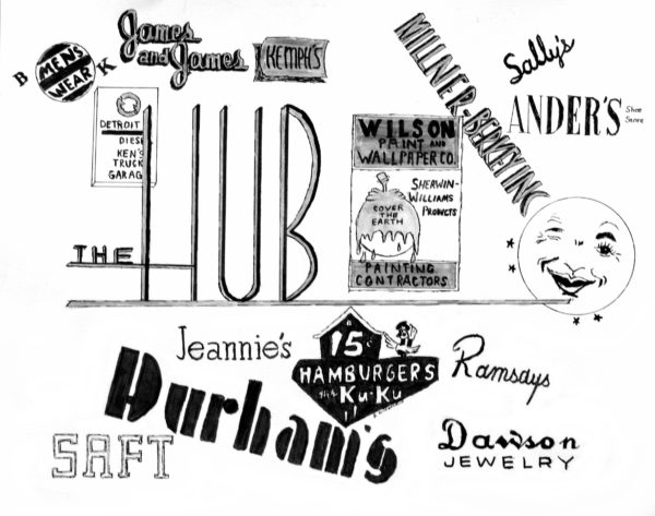 8 x 10 black matted, wrapped, signed print on acid-free art paper of Miami 1960’s Business Collage.