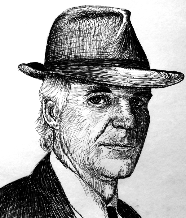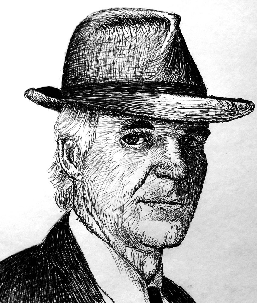Matted, wrapped, signed 8 x 10 print on fine art paper, your choice of white or cream. Steve Martin, looking dapper in a fedora.