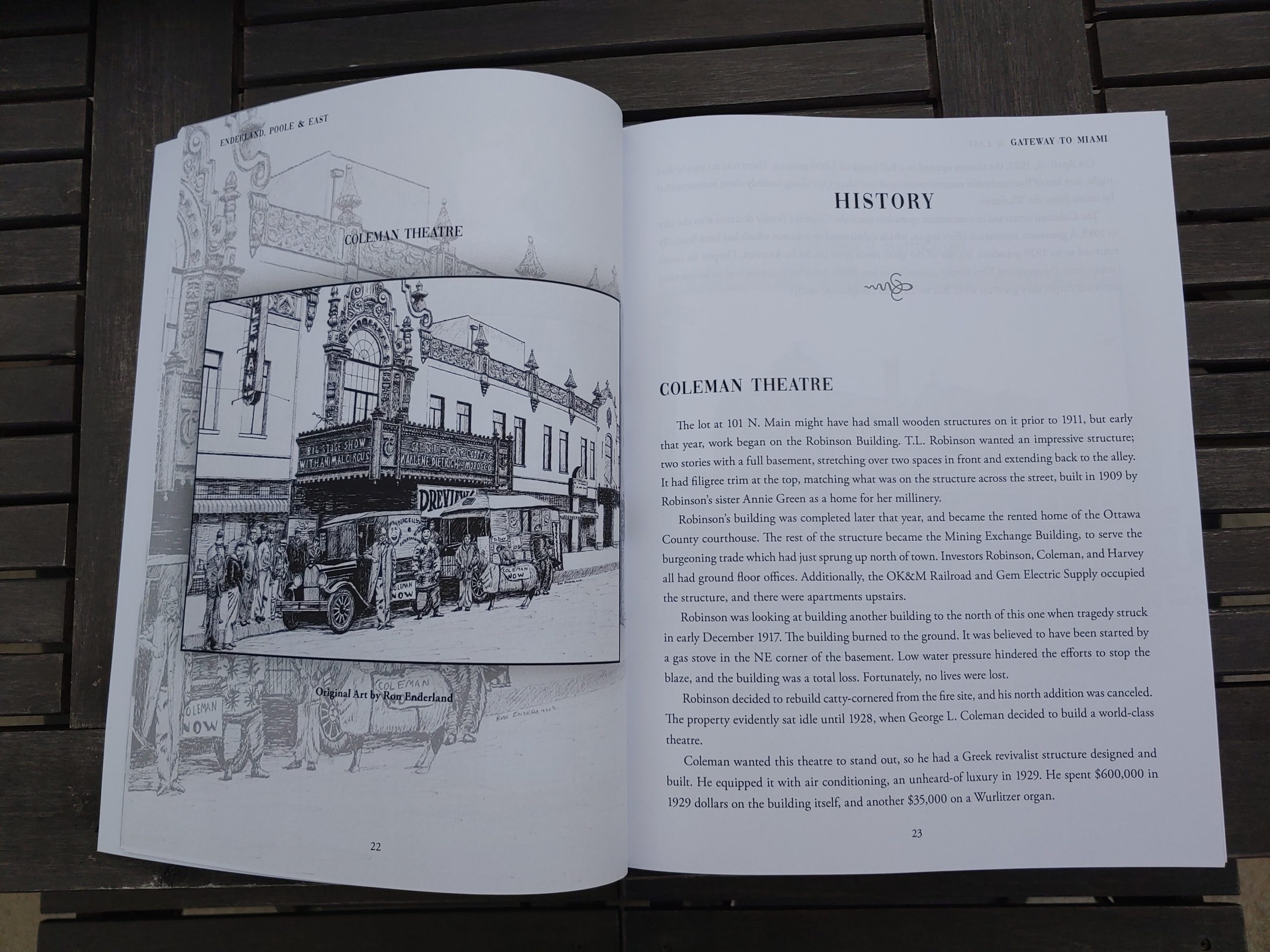 This book chronicles 20 well-loved places in Miami, Oklahoma with original art, historical narrative, and present-day photos. You’ll enjoy having this volume sitting out for perusal while watching a fire, sipping a cup of coffee, or simply wishing to revisit the past of a truly wonderful community.