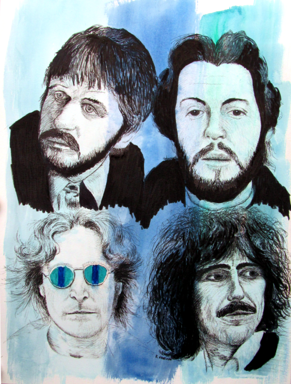 Matted, wrapped, signed 8 x 10 print on fine art paper, your choice of white or cream. Yer Blues, depicting the former Beatles as seen sometime on the 1970’s.